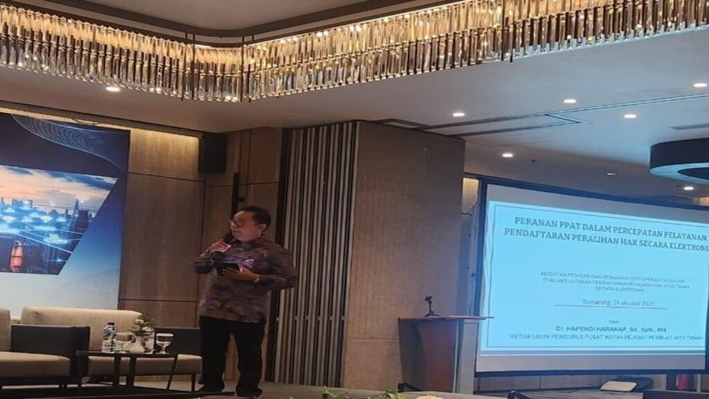 SEMARANG – Ketua Umum Pengurus Pusat Ikatan Pejabat Pembuat Akta Tanah (PP IPPAT), Dr. Hapendi Harahap, SH., SpN., MH., menegaskan peranan