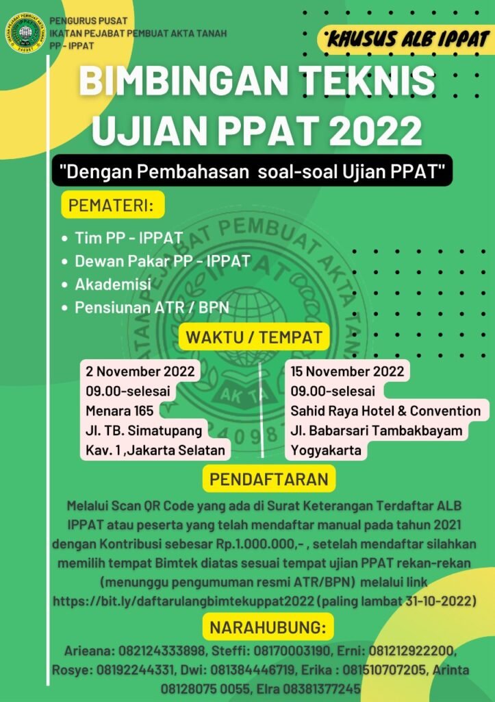 Jakarta, ppippat.org, PP IPPAT menyelenggarakan Bimbingan Teknis (Bimtek) Ujian PPAT 2022 secara offline di 2 lokasi, Jakarta dan Yogyakarta, 2