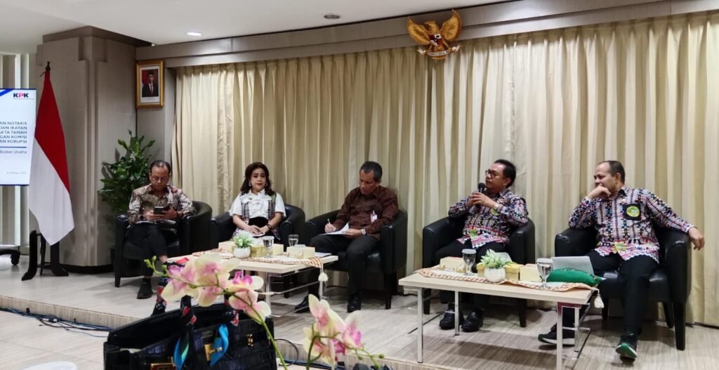 Ketum IPPAT Hapendi Harahap didampingi Sekum Otty HC Ubayani dan Kabid Non Litigasi Aksal Arsyad menyampaikan hambatan layanan pertanahan. Jakarta,