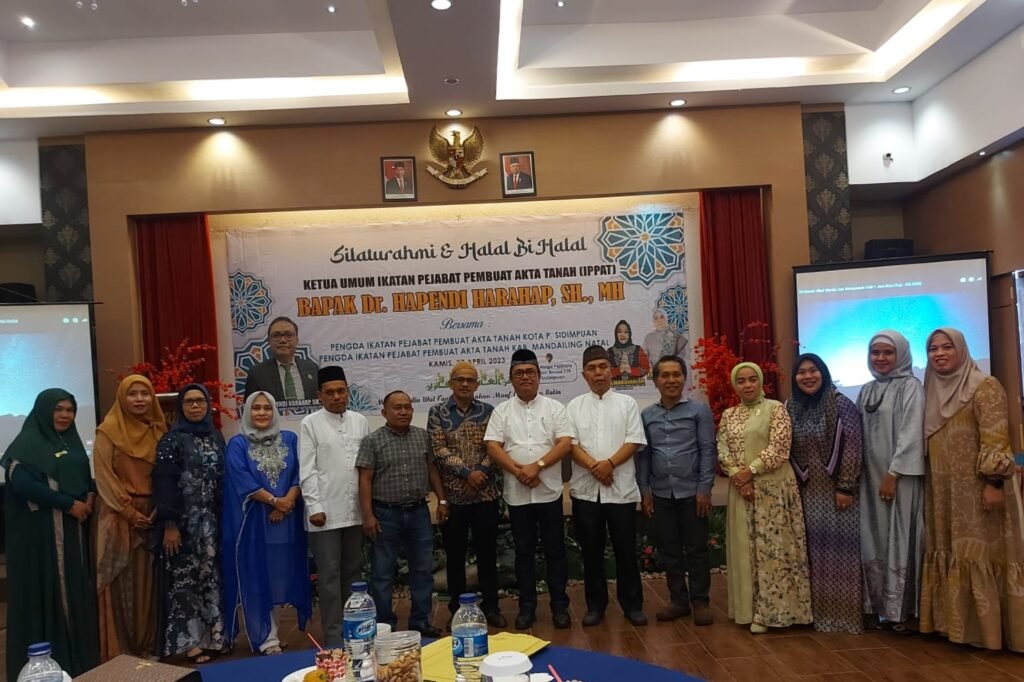 Padang Sidempuan, ppippat.org, Ketua Umum Pengurus Pusat Ikatan Pejabat Pembuat Akta Tanah (PP IPPAT) Dr. Hapendi Harahap. SH. MH.Sp.N menghadiri Silahturahmi dan Halal Bihalal yang diselenggarakan oleh Pengda IPPAT Kota Padang Sidempuan dan Mandailing Natal, Sumatera Utara, di Hotel Mega Permata, Jalan Imam Bonjol. Padang Sidempuan, Kamis (27/4/2023).
