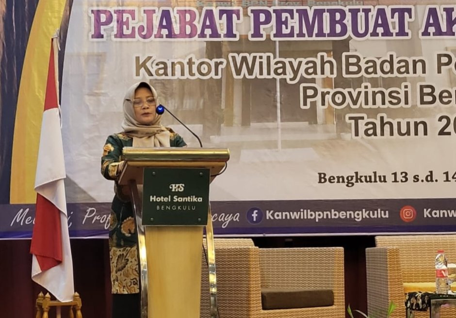 Kakanwil BPN Bengkulu Sukiptiyah saat menyampaikan selamat datang kepada peserta pembinaan PPAT.