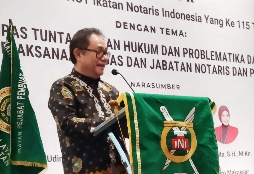 “Mafia tanah tersebut memanfaatkan celah proses peralihan maupun pembebanan hak atas tanah yang didaftarkan ke kantor pertanahan”, kata Hapendi saat menyampaikan sambutan pada Seminar bertajuk “Kupas Tuntas Badan Hukum dan Problematika dalam Pelaksanaan Tugas dan Jabatan Notaris dan PPAT”, di hotel Claro, Makassar, Sabtu, (15/7/2023).