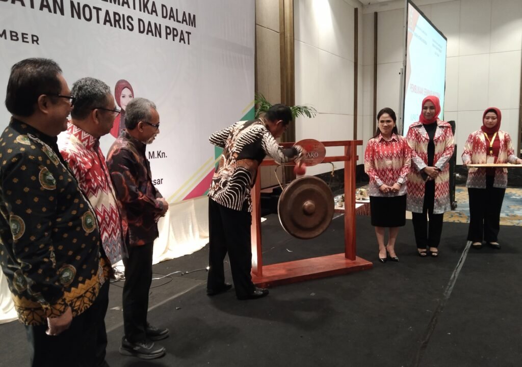 Seminar selanjutnya dibuka secara resmi dengan ditandai pemukulan gong oleh Kakanwil Kemenkumham Leberty Sitinjak didampingi Ketum IPPAT Hapendi Harahap dan Ketua Pengwil INI dan IPPAT Sulawesi Selatan.