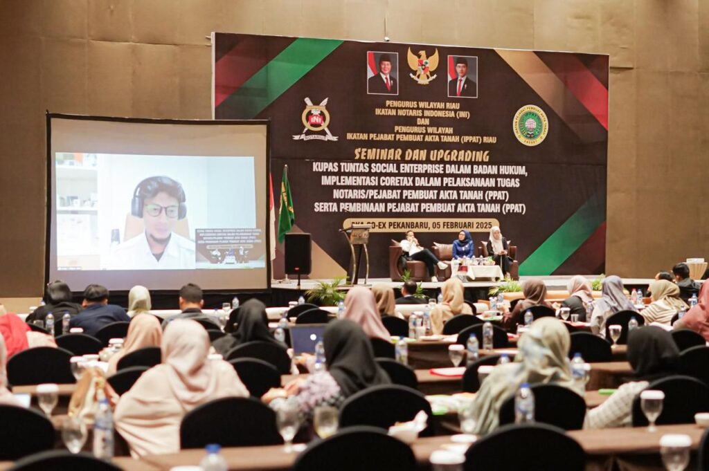 Untuk itu, pengurus Wilayah Ikatan Pejabat Pembuat Akta Tanah (Pengwil IPPAT) Riau bekerjasama dengan Pengurus Wilayah Riau Ikatan Notaris Indonesia mengelar Seminar dan Upgrading bertajuk Kupas Tuntas Social Enterprise dalam Bidang Hukum, Implementasi Coretax dalam Pelaksanaan Tugas Notaris/Pejabat Pembuat Akta Tanah serta Pembinaan Pejabat Pembuat Akta Tanah pada Rabu (5/2). Kegiatan yang berlangsung di Ballroom SKA Co-Ex ini diikuti oleh para notaris dan Pejabat Pembuat Akta Tanah (PPAT) se Provinsi Riau.