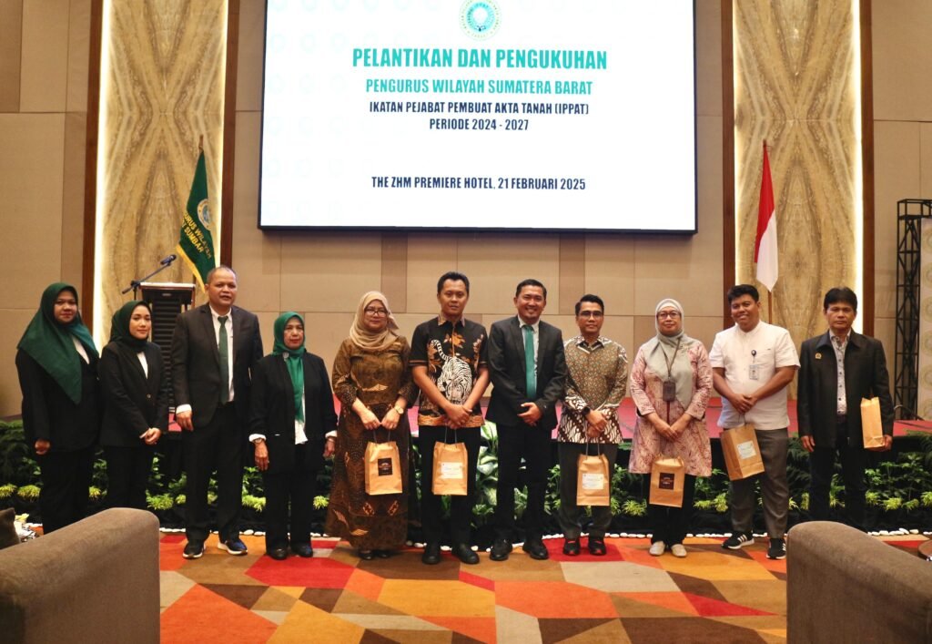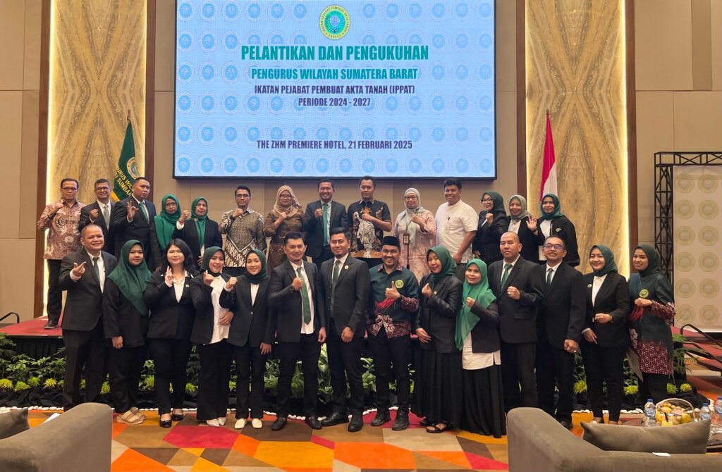 ppippat.org, Padang – Pengurus Wilayah Ikatan Pejabat Pembuat Akta Tanah (Pengwil IPPAT) Sumatera Barat (Sumbar) mengukuhkan dan melantik 135 pengurus untuk masa bhakti 2024-2027 pada hari Jumat, tanggal 21 Februari 2025 lalu bertempat di Ball Room ZHM Premiere Hotel Padang