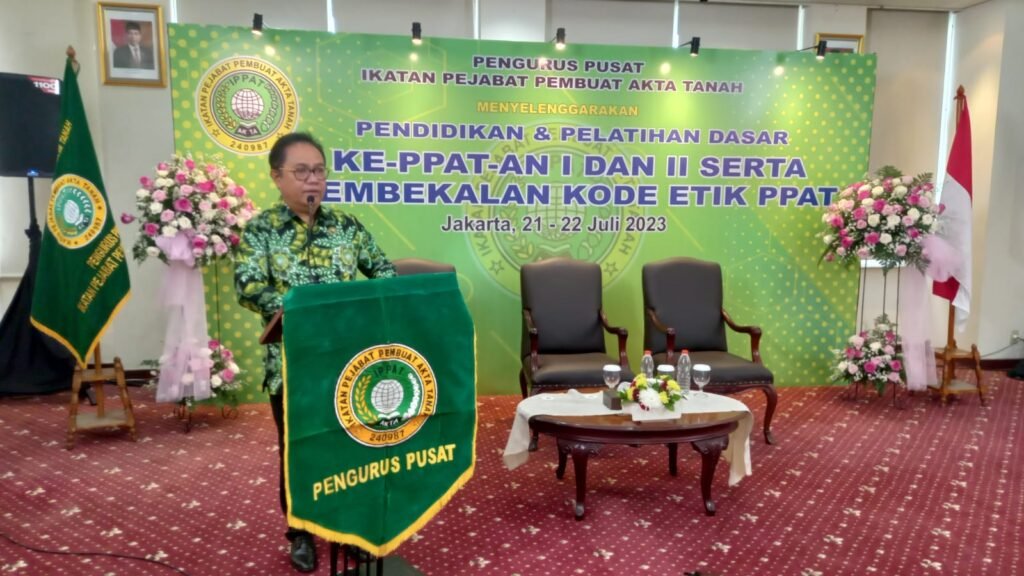 Jakarta, ppippat.org, PP IPPAT menyelenggarakan Pendidikan Latihan Dasar I-II  dan Pembekalan Kode Etik Calon PPAT, Jumat-Sabtu (21-22 Juli 2023).
