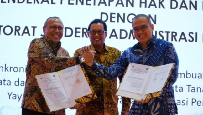 PKS kedua lembaga itu, disaksikan oleh Sekretaris Jenderal Kementerian ATR/BPN RI, Himawan Arief Sugoto.