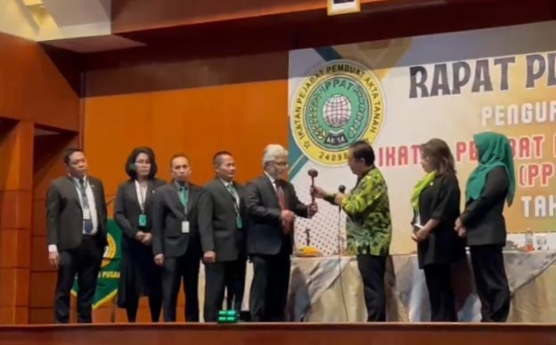 Ketum IPPAT Hapendi Harahap serahkan palu rapat pleno kepada pimpinan sidang rapat pleno.