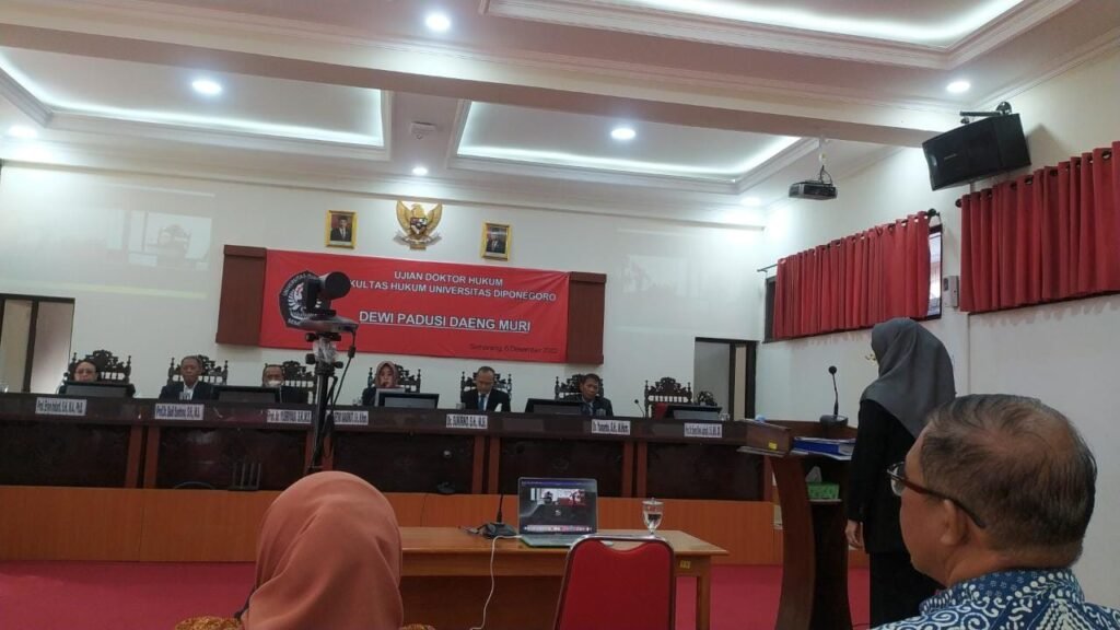 Adapun dewan pengujinya adalah Prof. Dr. Retno Saraswati, SH., M.Hum (Ketua tim Penguji), Dr. Sukirno, SH., MSi (Sekretaris dewan Penguji). Prof. Dr. Sonny Dewi Judiasih, SH, MH, CN. (Penguji eksternal), Prof. Dr Yusriyadi, SH. MS, (Penguji), Prof Erlyn Indarti SH MA.PhD., (Promotor dan Penguji), Prof. Dr. Budi Santoso, SH MS. (Co Promotor dan Penguji), dan Dr. Yunanto, SH.MHum (Penguji).